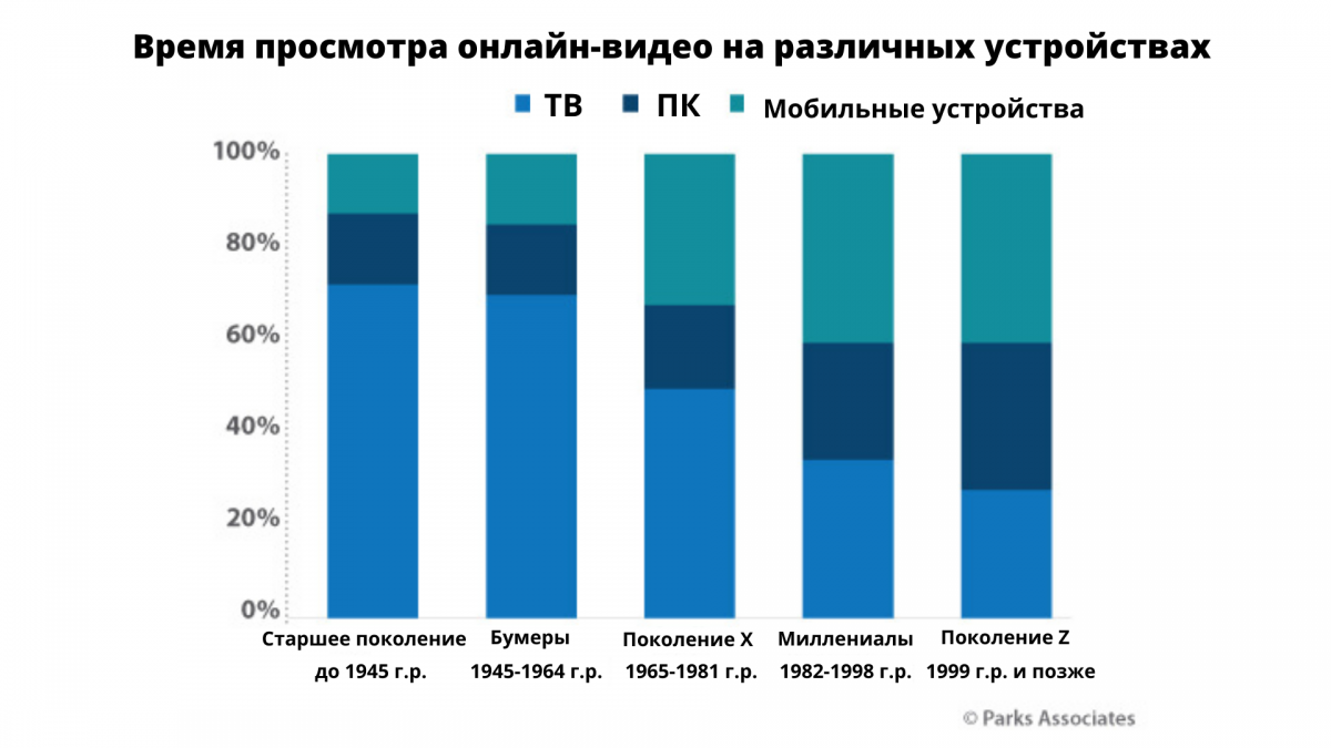 В анализе отмечается, что средний срок подписки на OTT-платформы составляет примерно два с половиной года, причём лояльность пользователей сильно зависит от их возраста. Так, старшее поколение предпочитает оформлять подписку на меньшее количество сервисов, но пользоваться ими в течение длительного периода. Молодежь, напротив, подписывается на различные платфоры, но не склонна к постоянству и предпочитает «мигрировать» между ресурсами. В целом молодые люди склонны отписываться от платформ быстрее, чем абоненты постарше. Миллениалы и представители поколения Z отмечают, что просматривают видео на нескольких платформах не реже одного раза в месяц.